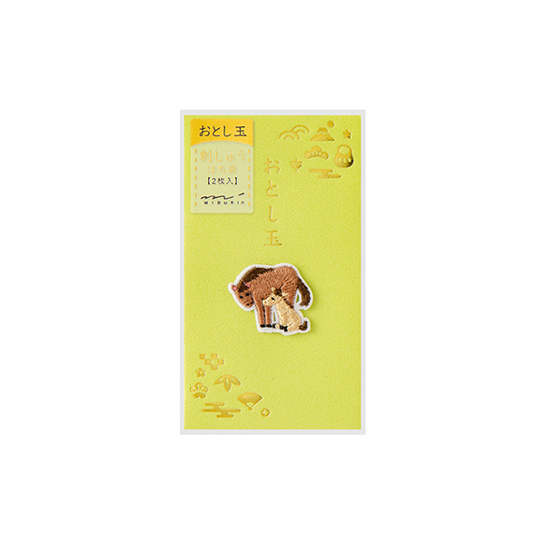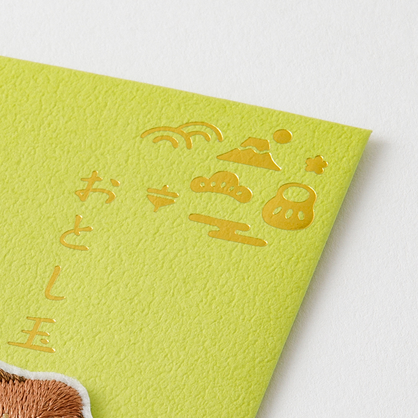 刺繍×金箔の華やかなデザインのおとし玉袋 お正月にふさわしい華やかなデザインのおとし玉袋。 「ぽち袋」は三つ折りの紙幣が入るサイズ。繊細な刺繍モチーフが特徴的です。