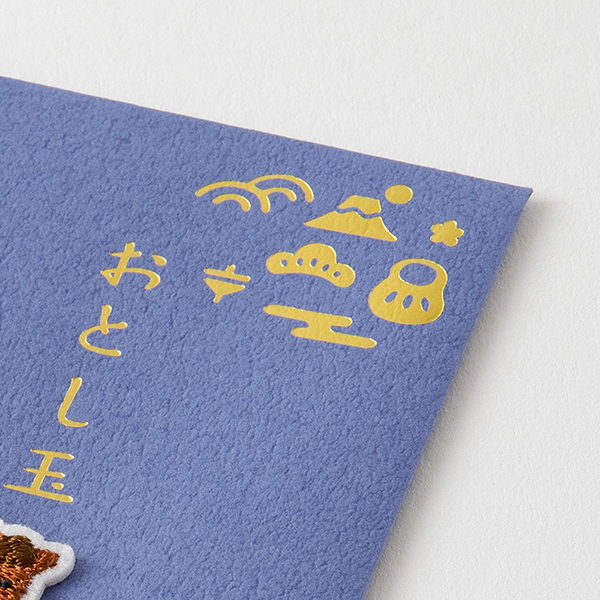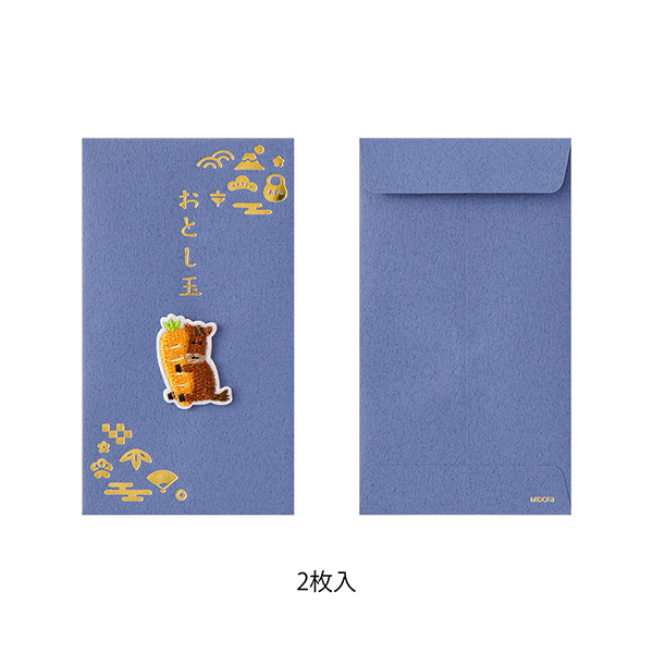 刺繍×金箔の華やかなデザインのおとし玉袋 お正月にふさわしい華やかなデザインのおとし玉袋。 「ぽち袋」は三つ折りの紙幣が入るサイズ。繊細な刺繍モチーフが特徴的です。