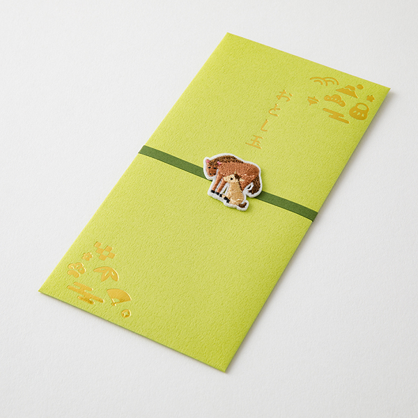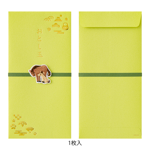 刺繍×金箔の華やかなデザインのおとし玉袋 お正月にふさわしい華やかなデザインのおとし玉袋。「金封」はお札を折らずにそのまま入れられるサイズ。 繊細な刺繍モチーフが特徴的です。