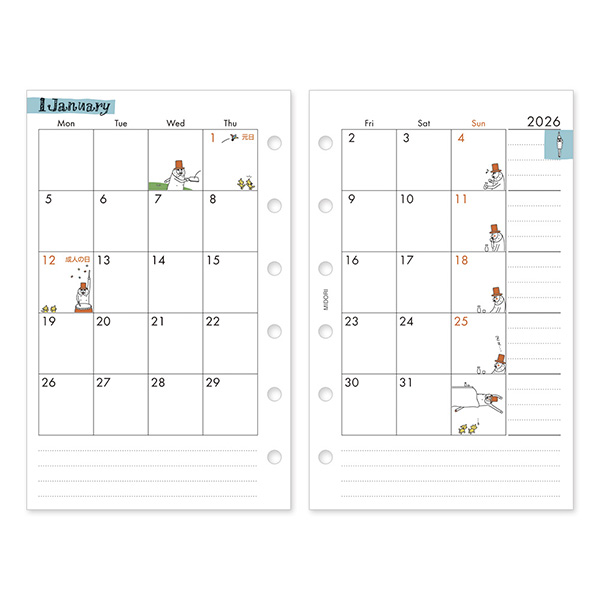 | 備考 | ●こちらの商品の異なるタイプ(4月始まり、日曜始まりなど)の発売予定はございません。 ●国民の祝日・休日などは、2025年2月3日発表の官報に基づいています。その後の、法改正にともない、変わる場合があります。 |