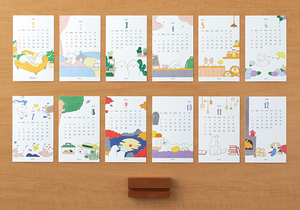 2026年版は「わんこと暮らす1年」をテーマに、お話の1ページのようなシーンとともに、カレンダーをめくるたびに新鮮な気持ちで季節の変化が楽しめます。