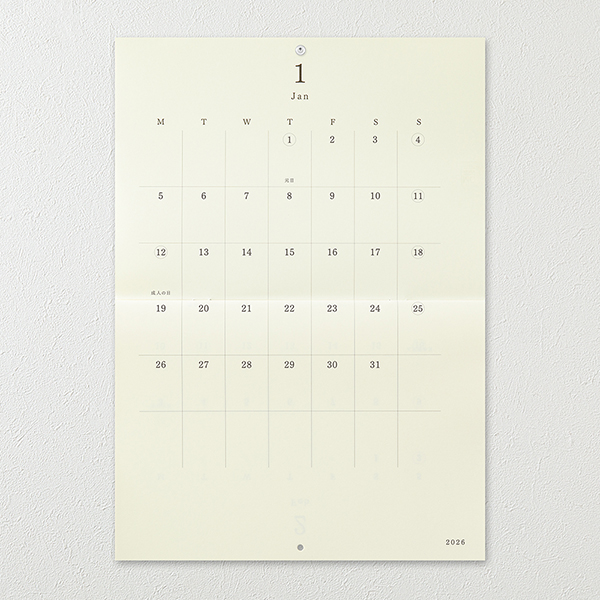 | 内容 | カレンダー見開き12ページ(2026年1月~12月/月曜始まり) |