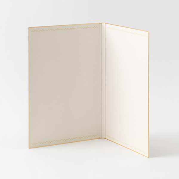 洋書のような箔押しが全面に施された表紙が印象的な二つ折り色紙です。