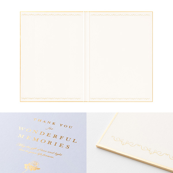 二つ折りにして本棚に収納できます。多人数の寄せ書きに最適なB5サイズです。