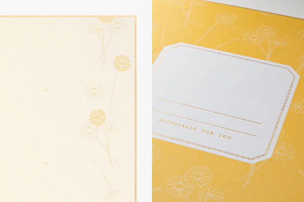 表紙にはタイトルやメッセージが書き込めます。表紙と同じ柄が内側にもさりげなくデザインされています。