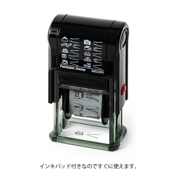 回転して柄を選べ、ノートやダイアリーなどを簡単にデコレーションできる楽しいスタンプです。 インキパッド付なので気軽に何度でもたくさん押せる楽しさと、手描きでは難しいイラストが一瞬で再現できる手軽さが魅力です。 付属のインキパッドで約2,000回押せます。インキが薄くなったら、別売りの「専用補充インキ」>>で補充可能です。