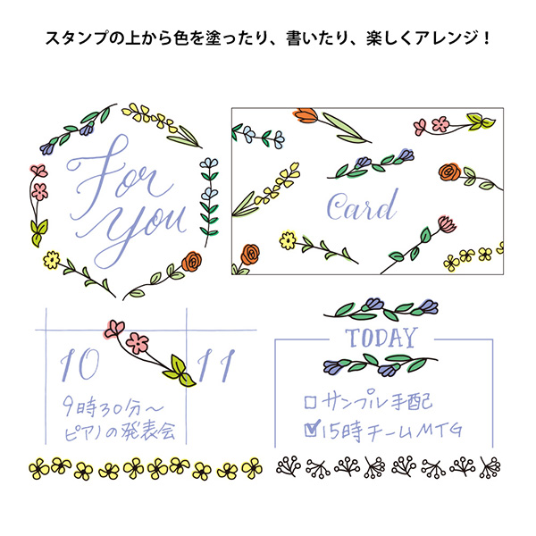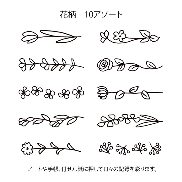 「花柄」は1つのスタンプで、10種類のさまざまなお花の柄を切り替えて使用できます。
