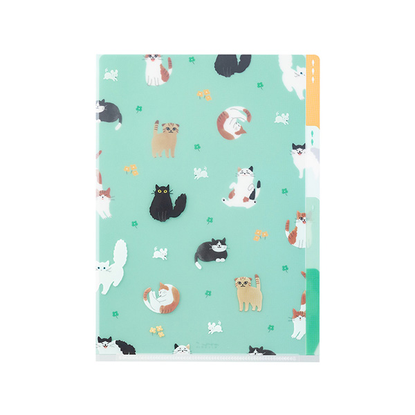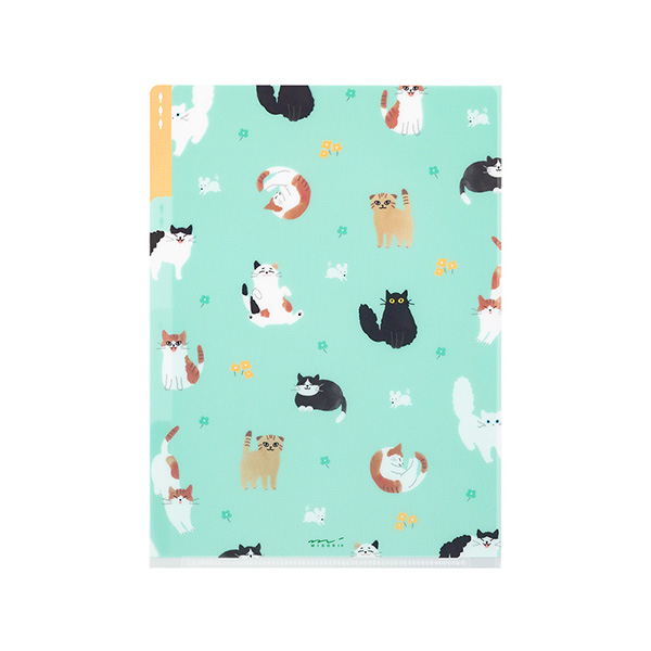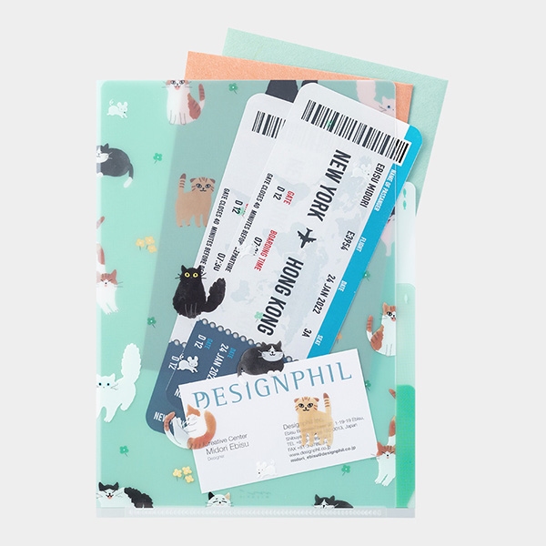 透明の素材を生かし、1枚目、2枚目、3枚目…とそれぞれのポケットに異なる絵柄をデザインしました。何も入れていないときと、書類を挟んだときとで絵柄が変わり見た目も楽しい!