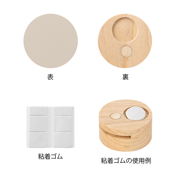 | ご使用にあたって | 〇天然の木を使用しているため色や木目には個体差があります。 〇火気の近くや高温多湿になる場所に長時間保管すると本体が変形、粘着ゴムが変質する恐れがあります。 〇風や振動など、ご使用環境によってはクリップが落下する恐れがあります。 |