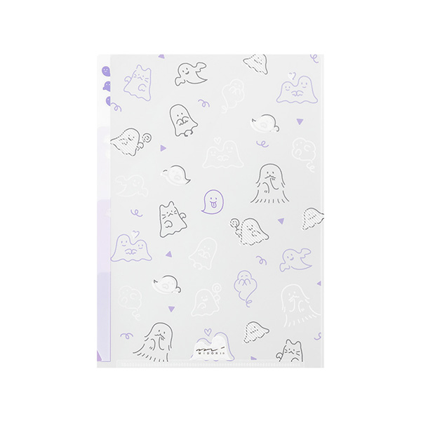 「おばけ柄」は、ユニークなおばけたちと本体のクリア素材がマッチした、ポップなデザインです。