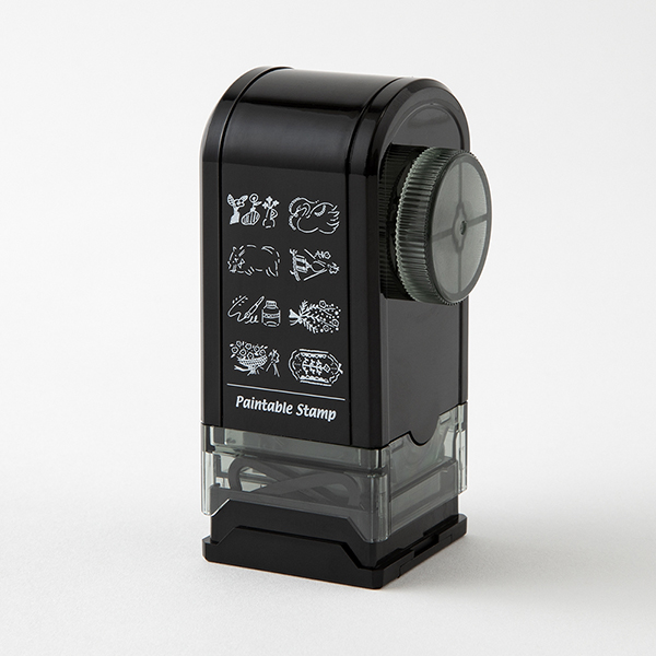 回転式で柄を選ぶ楽しみと、押した後に彩る楽しみのあるスタンプです。
