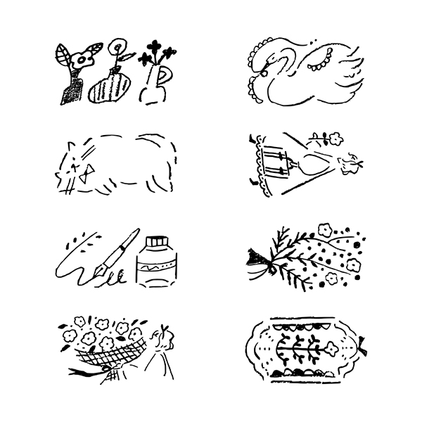 「アンティーク柄」は、フレンチブロカントなイメージの雑貨や動物をラフなタッチで表現したデザインです。アナログ感と相性がよいモチーフたちが、ノートの隙間を柔らかな印象に◎ちょっとしたギフトに添えるカードや手帳のデコレーションなど、さまざまな用途でお使いいただけます◎