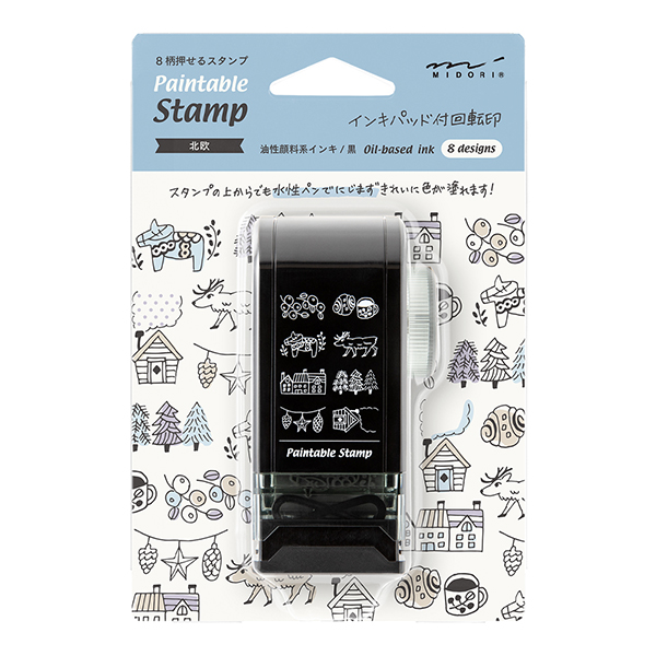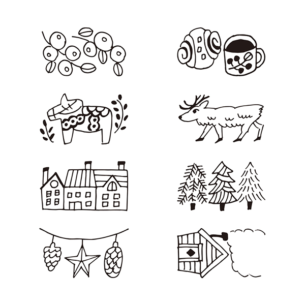 「北欧柄」は、北欧らしい穏やかで自然を感じさせるようなモチーフ。組み合わせて押すと、ストーリーが感じられるような世界観が作りやすいデザインのスタンプです。