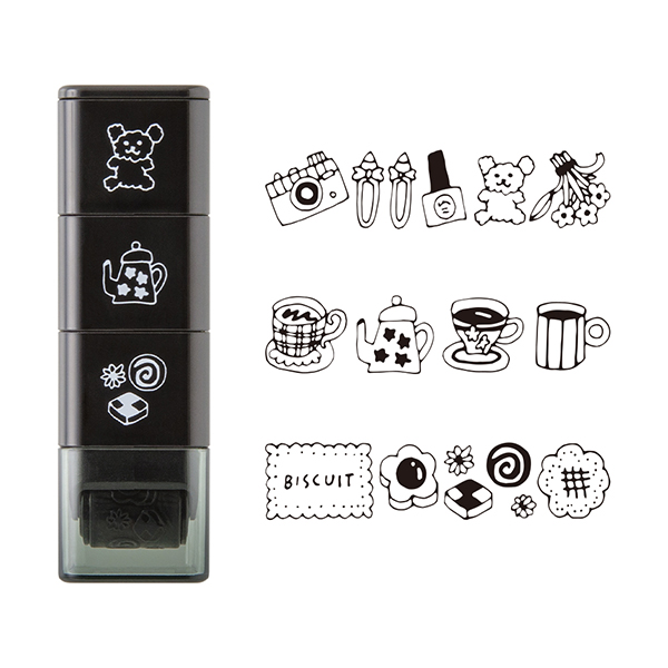 ノートやダイアリーの記録を楽しむためのローラータイプのスタンプです。インキが入っている浸透印なのでスタンプ台は不要。これ1つで連続して繋がる、3つの繊細な柄をきれいに押すことができます。