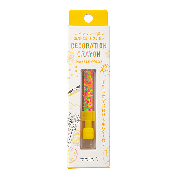 カッターのようにスライド式で簡単に芯が出し入れできるクレヨンです。 クレヨンならではのあたたかみのある風合いで、スタンプを彩り豊かにデコレーションすることができます。