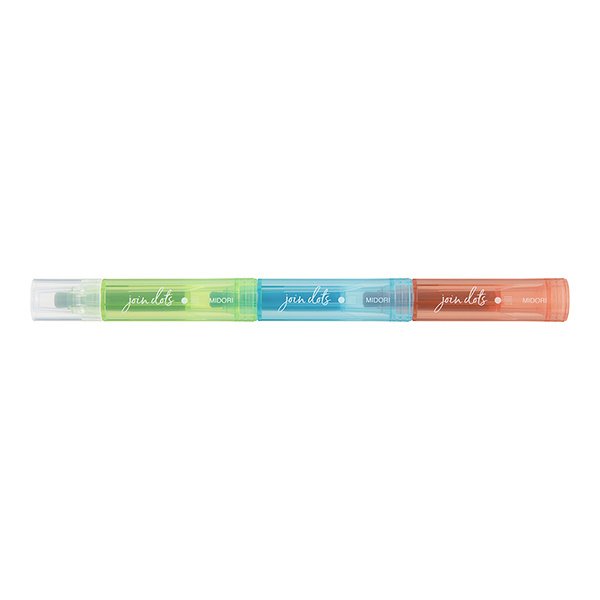『ジョインドッツ』は、押すだけでドットがきれいに描ける、コモンプレイスブック作りをサポートする3色一体型の連結ペンです。コモンプレイスブック作りに不可欠なジャンルごとの色分けを、1本で手軽に行うことができます。