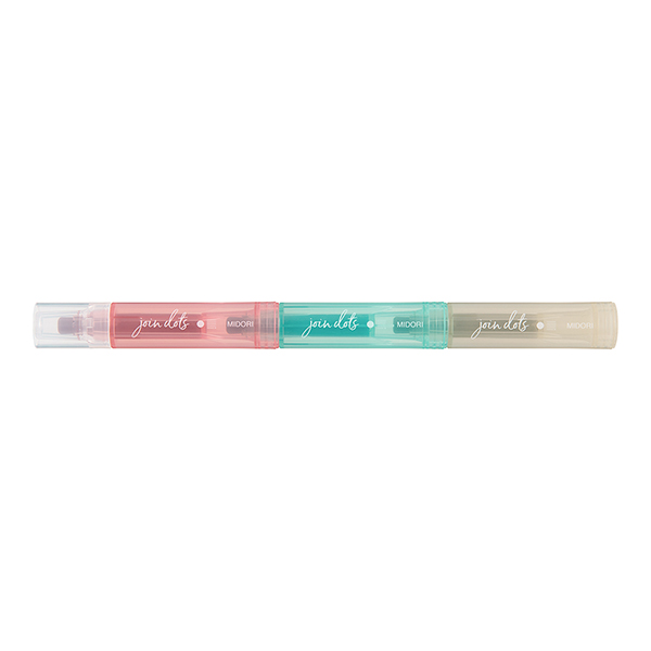 『ジョインドッツ』は、押すだけでドットがきれいに描ける、コモンプレイスブック作りをサポートする3色一体型の連結ペンです。コモンプレイスブック作りに不可欠なジャンルごとの色分けを、1本で手軽に行うことができます。