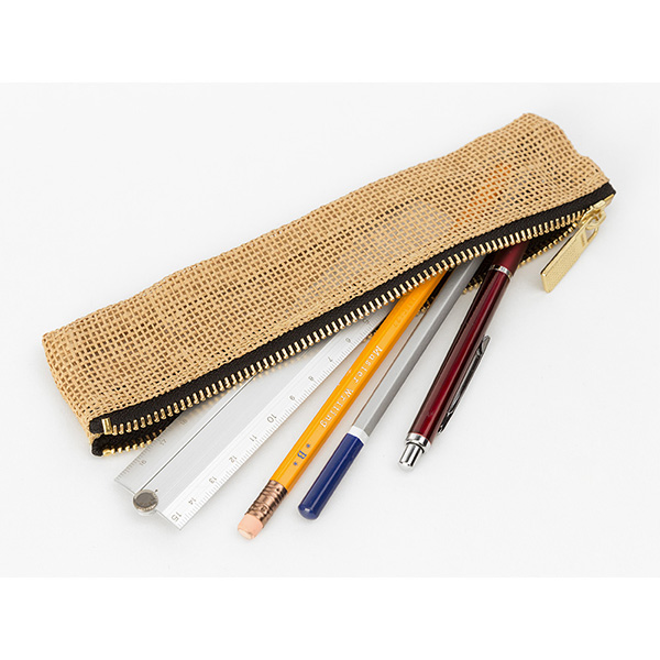 軽く、耐水性、耐摩耗性に優れた「ペーパーコード」のペンケース。高級チェアにも使われる丈夫な素材です。普通のペンケースより長い21cmなので、削っていない鉛筆など長めの筆記具も入ります。