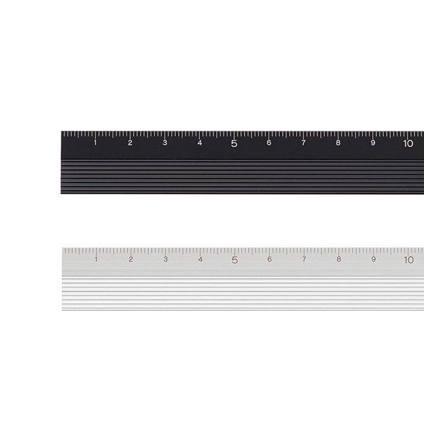 軽く耐久性に優れたアルミ製定規。カッターの使用にも適しています。シンプルで使いやすさにこだわった日本製の定規です。