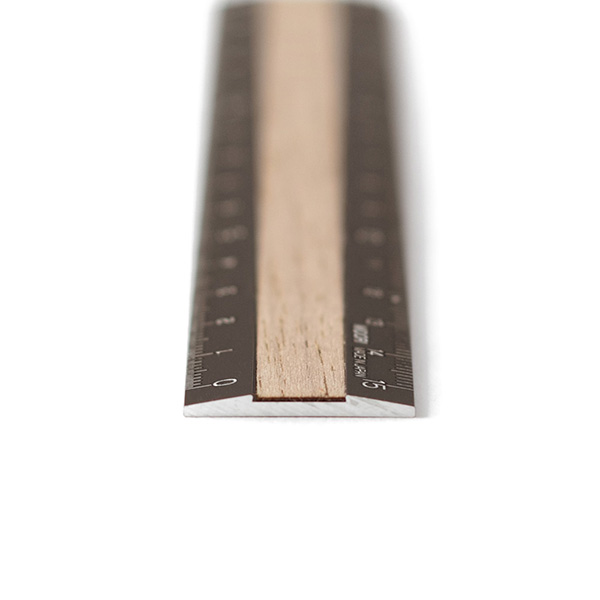 軽くて強度のあるアルミ素材と、アメリカ産天然木ウォールナットを組み合わせた15cm定規です。深い色合いと木目が美しい高級感のあるウォールナットを採用しています。消えないレーザー刻印目盛りなので、末永くご使用いただけます。アルミ素材のためカッターの使用もOK。