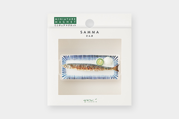【さんま柄】パリッと香ばしく焼かれたさんまの皮や大根おろしが繊細な作りで再現されています。