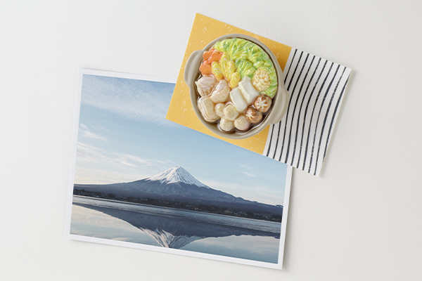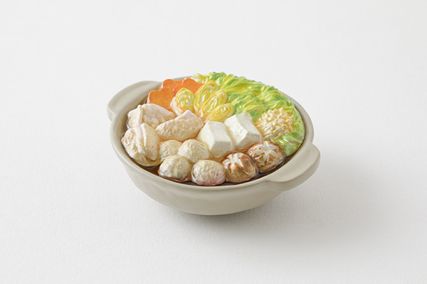 【寄せ鍋柄】白菜、人参、長ネギ、鶏肉、豆腐、椎茸、肉団子など定番の具材を繊細に表現し、鍋の色や大きさ、ボリューム感にもこだわりました。