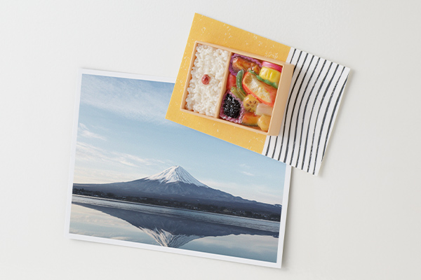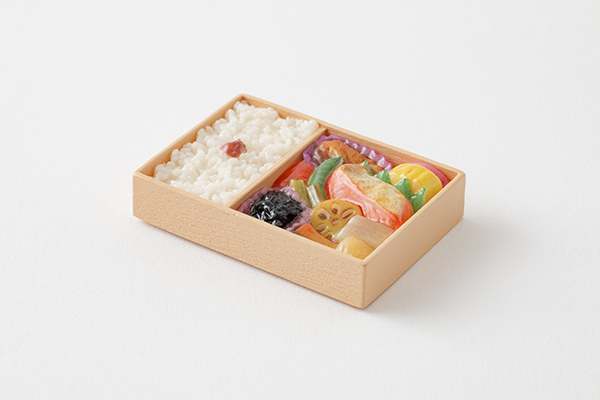【幕ノ内弁当柄】おかず一つひとつの形や色、全体のツヤ感まで繊細に表現しました。