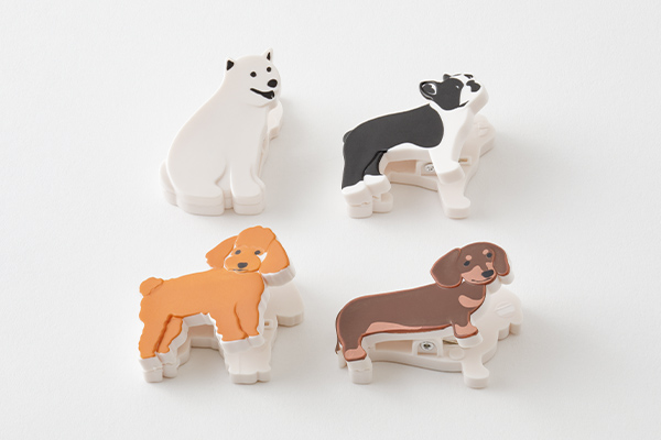 【イヌ柄】白い柴犬・ダックスフント・トイプードル・フレンチブルドッグの4種類のクリップです。
