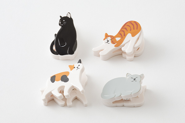 【ネコ柄】猫らしいかわいいポーズをした、黒猫・トラ猫・三毛猫・グレー猫の4種類のクリップです。