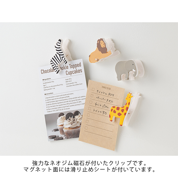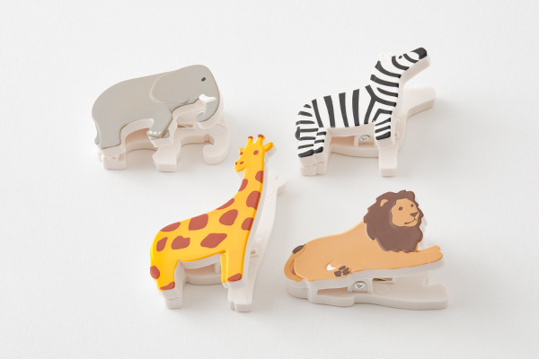 4種類のかわいい動物をアソートした、マグネット付きクリップ