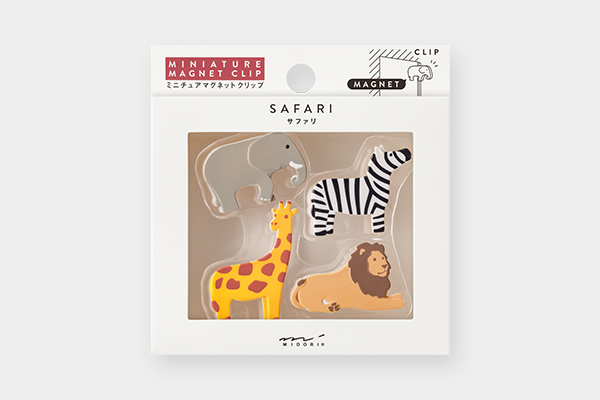 【サファリ柄】動物園で人気のゾウ・シマウマ・キリン・ライオンの4種類のクリップです。