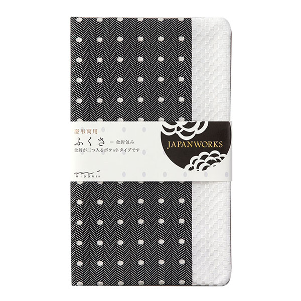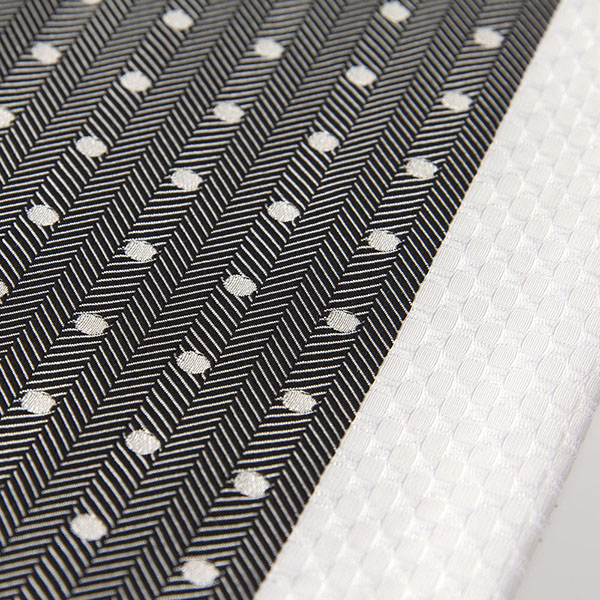 帯を手掛ける京都の機屋(はたや)で織りあげた、銀糸の細やかな柄が美しい[慶弔両用]のふくさ。 綾織と水玉のシャープな柄です。 金封が二つ入るポケットタイプ。