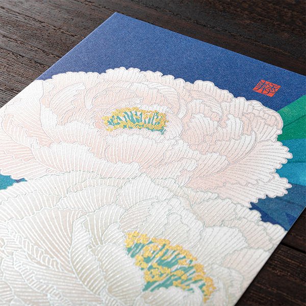 千年以上もの長い歴史と伝統に育まれた「越前和紙」に、上品に輝くシルク印刷を施しました。