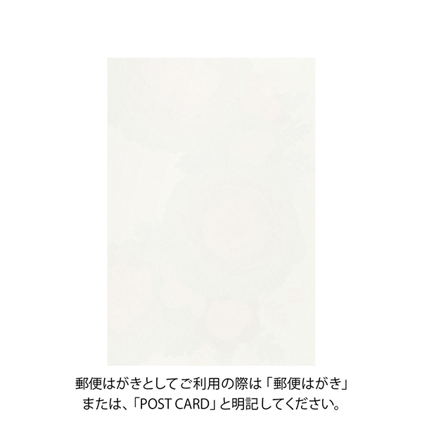 | 備考 | ・郵送はがきとしてご利用の際は、はがきの宛名面に「郵便はがき」または「POST CARD」と明記してください。 ・本製品はシルクスクリーン印刷のインキによるにおいが、まれに残っている場合がありますが人体に影響はありません。 ・ご使用になる筆記具によっては、はじいたり、にじむ場合がありますのでご注意ください。 ・和紙には樹皮等の原材料が混入している場合があります。 |