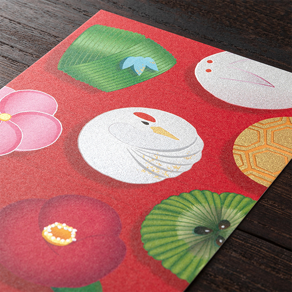 風合いのある越前和紙に、冬の和菓子が大胆に描かれたポストカードです。