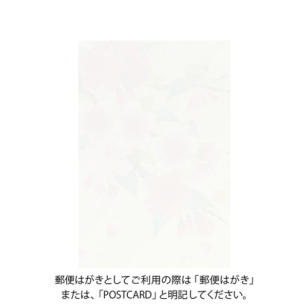 | 備考 | ・郵送はがきとしてご利用の際は、はがきの宛名面に「郵便はがき」または「POSTCARD」と明記してください。 ・本製品はシルクスクリーン印刷のインキによるにおいが、まれに残っている場合がありますが人体に影響はありません。 ・ご使用になる筆記具によっては、はじいたり、にじむ場合がありますのでご注意ください。 ・和紙には樹皮等の原材料が混入している場合があります。 |