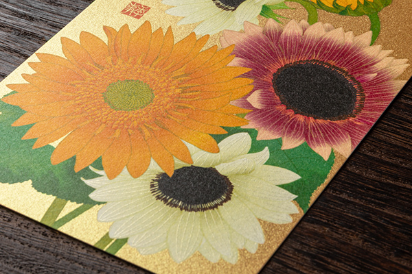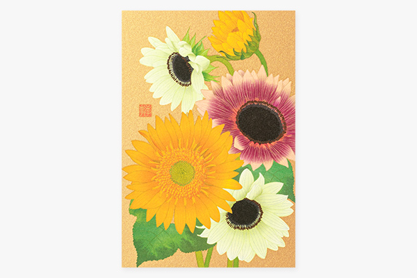 風合いのある越前和紙に、ひまわりが大胆に描かれたポストカードです。