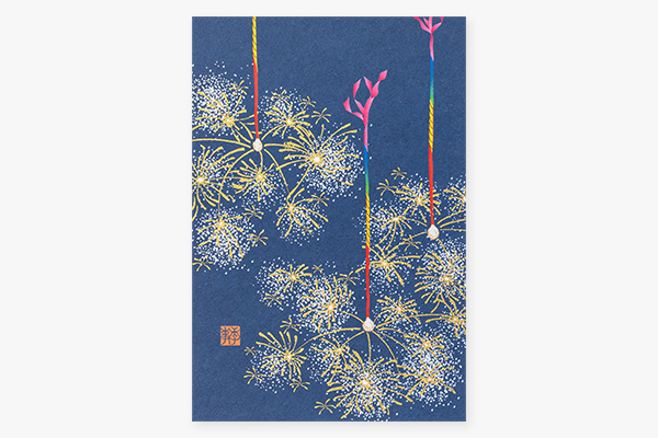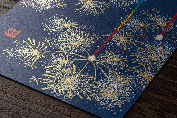 風合いのある越前和紙に、線香花火が大胆に描かれたポストカードです。