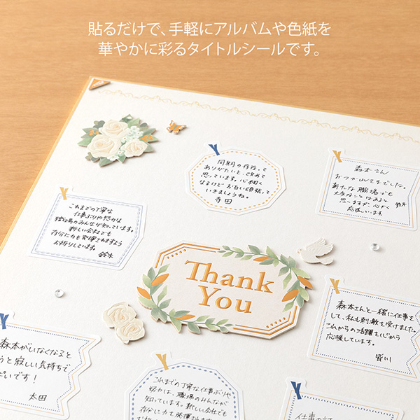お祝いや感謝の気持ちを伝えるのにぴったりな立体的な「タイトル」と、そのシーンを象徴する「モチーフ」がセットになった、「ペーパークラフトミュージアム」のタイトルシール。