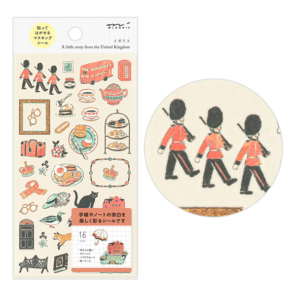 手帳やノートのデコレーションに使いやすい、大小のモチーフがたっぷり入ったシールです。ストーリー性のあるシールで、イギリスならではのモチーフや伝統的な柄をあしらったフレームの絵柄が入っており、デコレーションしながら旅気分が味わえます。