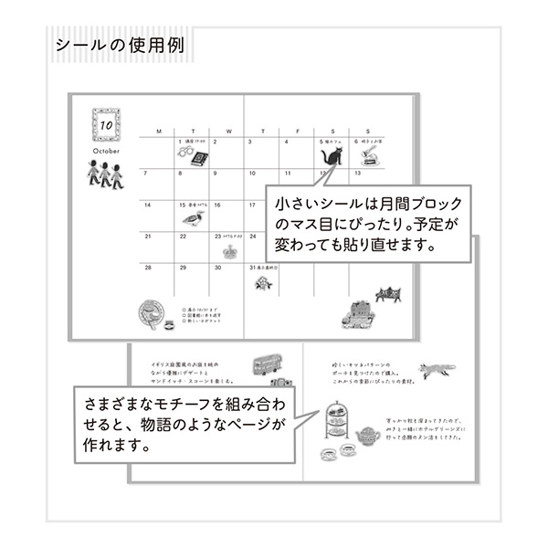 小さいシールは月間ブロックのマス目に貼ったり、大きいシールと組み合わせてお使いいただけます。