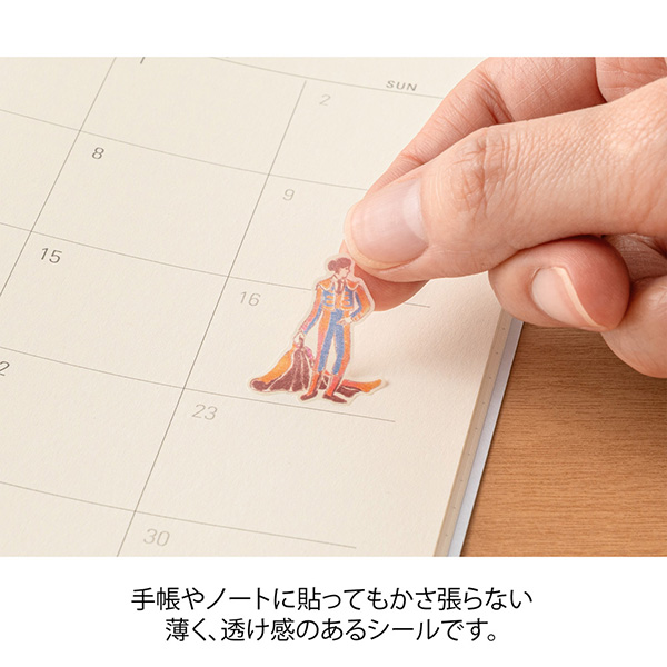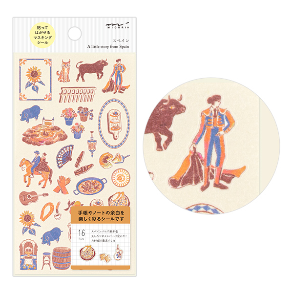手帳やノートのデコレーションに使いやすい、大小のモチーフがたっぷり入ったシールです。ストーリー性のあるシールで、スペインならではのモチーフや伝統的な柄をあしらったフレームの絵柄が入っており、デコレーションしながら旅気分が味わえます。