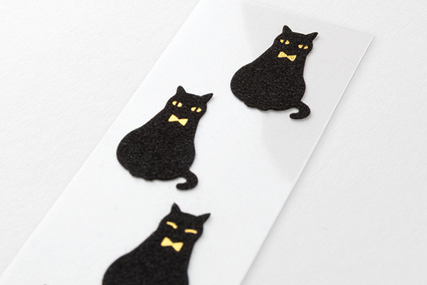 ちょこんと座ったポーズがかわいい、黒猫柄のシール。