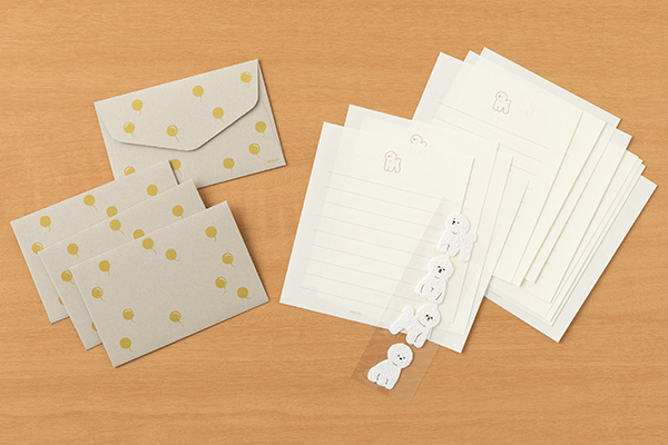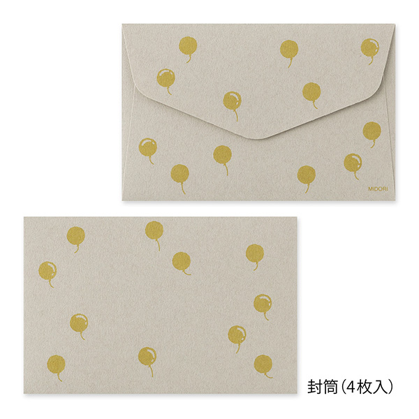 | サイズ | パッケージ/H131×W115mm×D5mm 便箋/H110×W91mm 封筒/H65×W100mm |