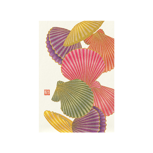 風合いのある越前和紙に、ヒオウギ貝が大胆に描かれたポストカードです。