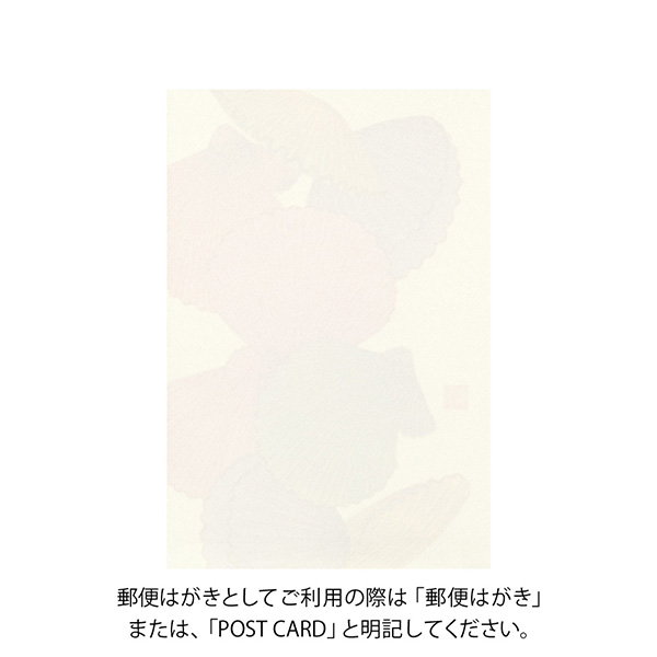 | 備考 | ・郵送はがきとしてご利用の際は、はがきの宛名面に「郵便はがき」または「POST CARD」と明記してください。 ・本製品はシルクスクリーン印刷のインキによるにおいが、まれに残っている場合がありますが人体に影響はありません。 ・ご使用になる筆記具によっては、はじいたり、にじむ場合がありますのでご注意ください。 ・和紙には樹皮等の原材料が混入している場合があります。 |