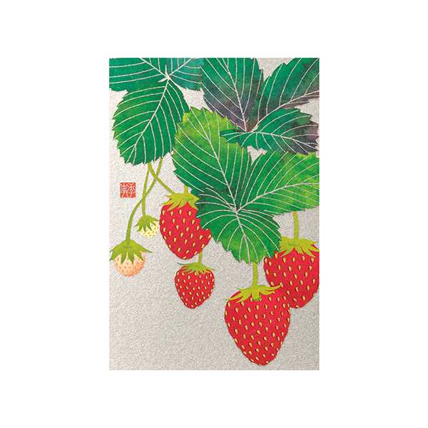風合いのある越前和紙にシルク印刷で、苺を大胆に映したポストカードです。