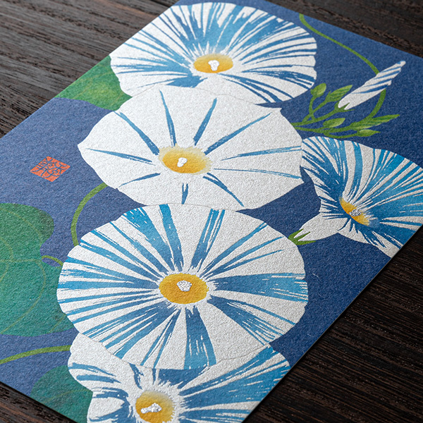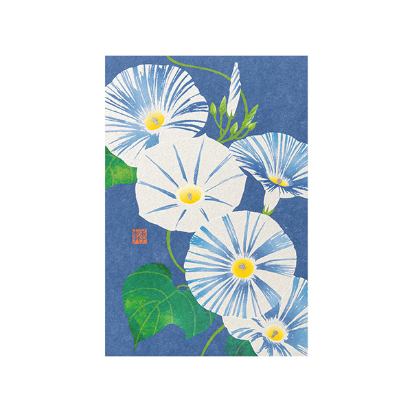 風合いのある越前和紙に、朝顔が大胆に描かれたポストカードです。
