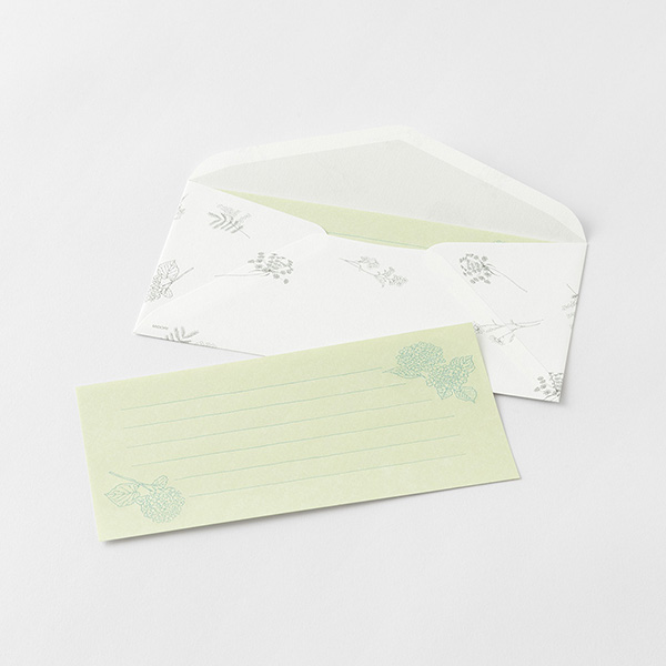 封筒は、繊細なお花の散らし柄が施され、内側は薄いグレーなので書いた内容が透けにくくなっています。