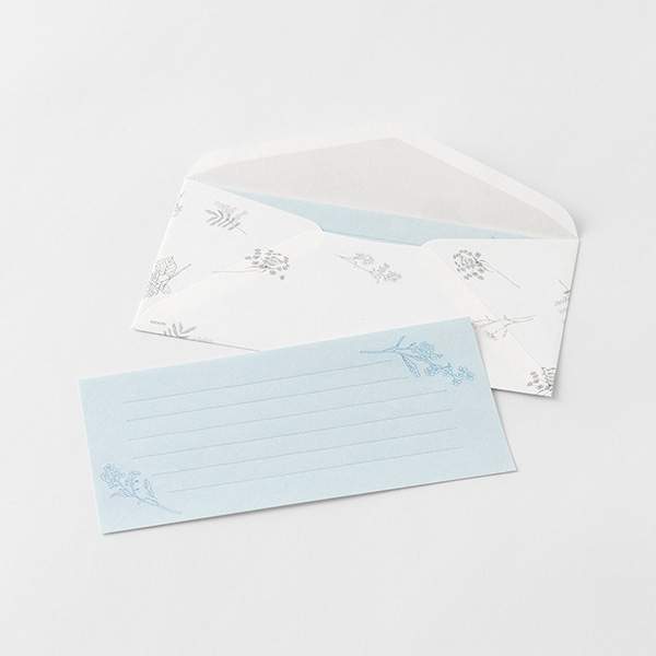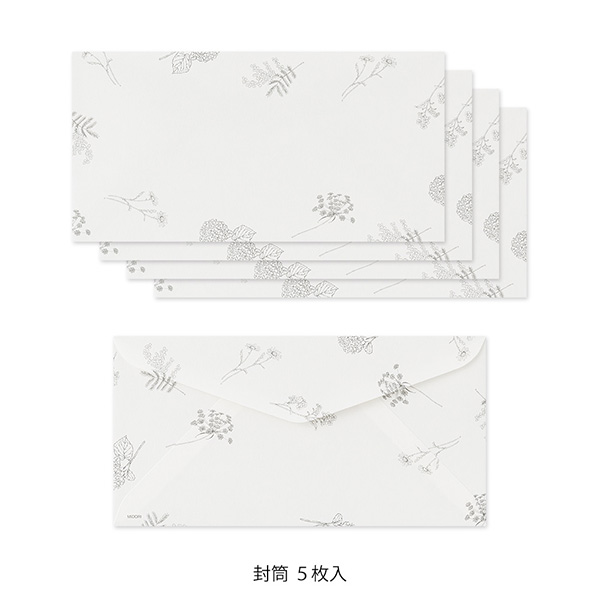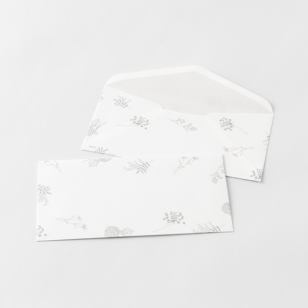 封筒は、繊細なお花の散らし柄が施され、内側は薄いグレーなので書いた内容が透けにくくなっています。